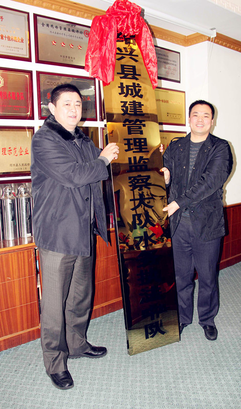 ,紹興縣城建管理監(jiān)察大隊水務執(zhí)法中隊成立授牌儀式在排水公司舉行。縣城管辦副主任許立人、集團公司副總經(jīng)理馮梁峰等領導參加儀式。
