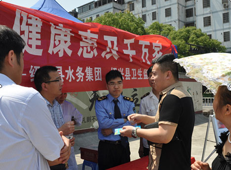 5月14日上午,縣水務(wù)集團(tuán)與縣衛(wèi)生監(jiān)督所聯(lián)合在柯橋城區(qū)開(kāi)展飲用水衛(wèi)生宣傳活動(dòng),發(fā)放飲用水知識(shí)宣傳頁(yè),并上門(mén)為用戶開(kāi)展免費(fèi)水質(zhì)檢測(cè)服務(wù)。