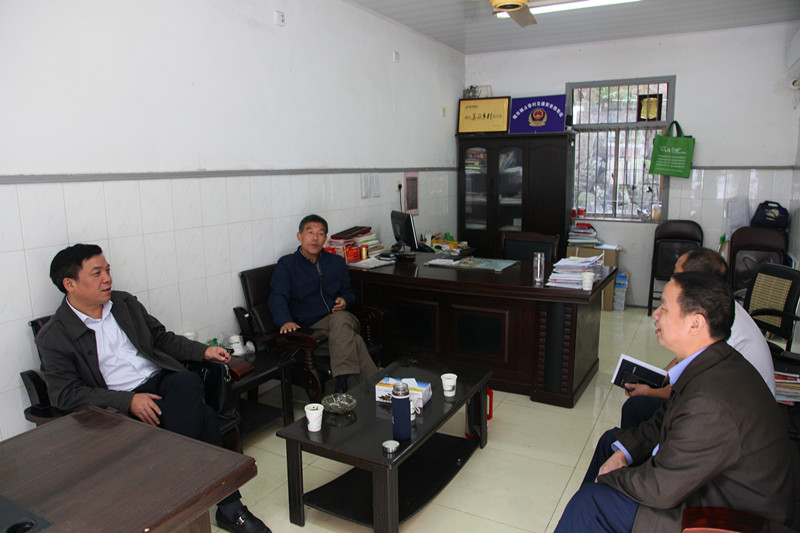 周董事長與占岙村委書記黃天明及該村掛聯干部研究“五星達標,3A爭創(chuàng)”工作