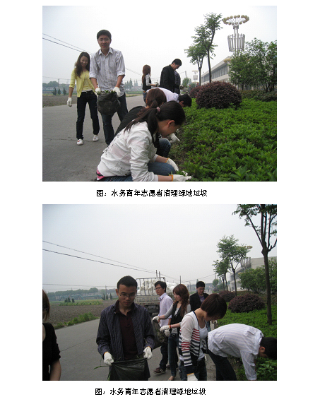 為美化城市環境迎接第六屆世界合唱比賽,同時也為“五四”青年節及建團八十八周年獻禮,5月8日下午,供水公司團總支組織青年志愿者進行了一場義務勞動,對柯湖路的垃圾進行了清理。
